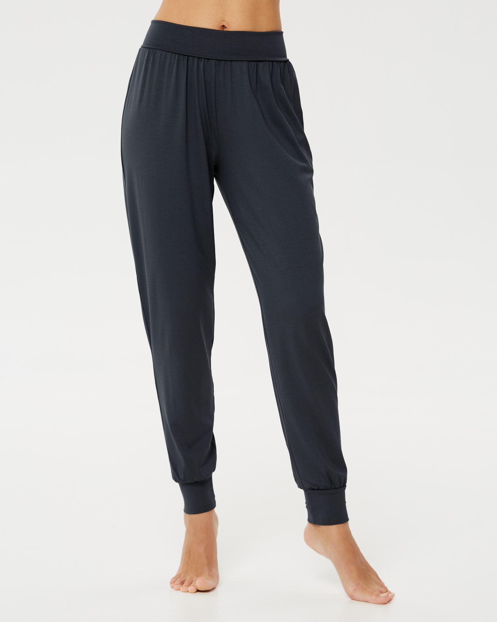 Удобные и мягкие брюки из вискозы с эластаном. Натуральная ткань и хорошо продуманный крой обеспечивают комфортные ощущения во время практики. Благодаря отсутствию резинки, широкий пояс не стягивает живот, манжеты мягко фиксируют штаны на щиколотке.